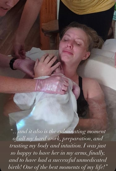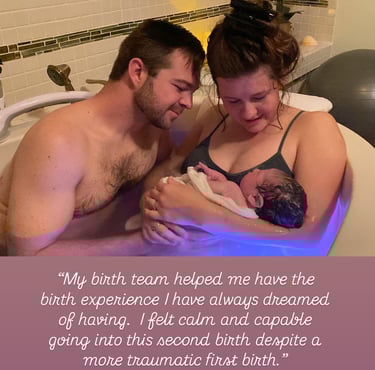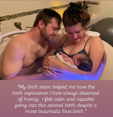 "...Katie was able to give me the tools and support I needed before birth to regain my confidence and feel excited and prepared to experience a peaceful birth. While in labor she was invaluable! She was key in helping me to stay calm, focused and have the birth I have always dreamed of. I could not have done it without her.